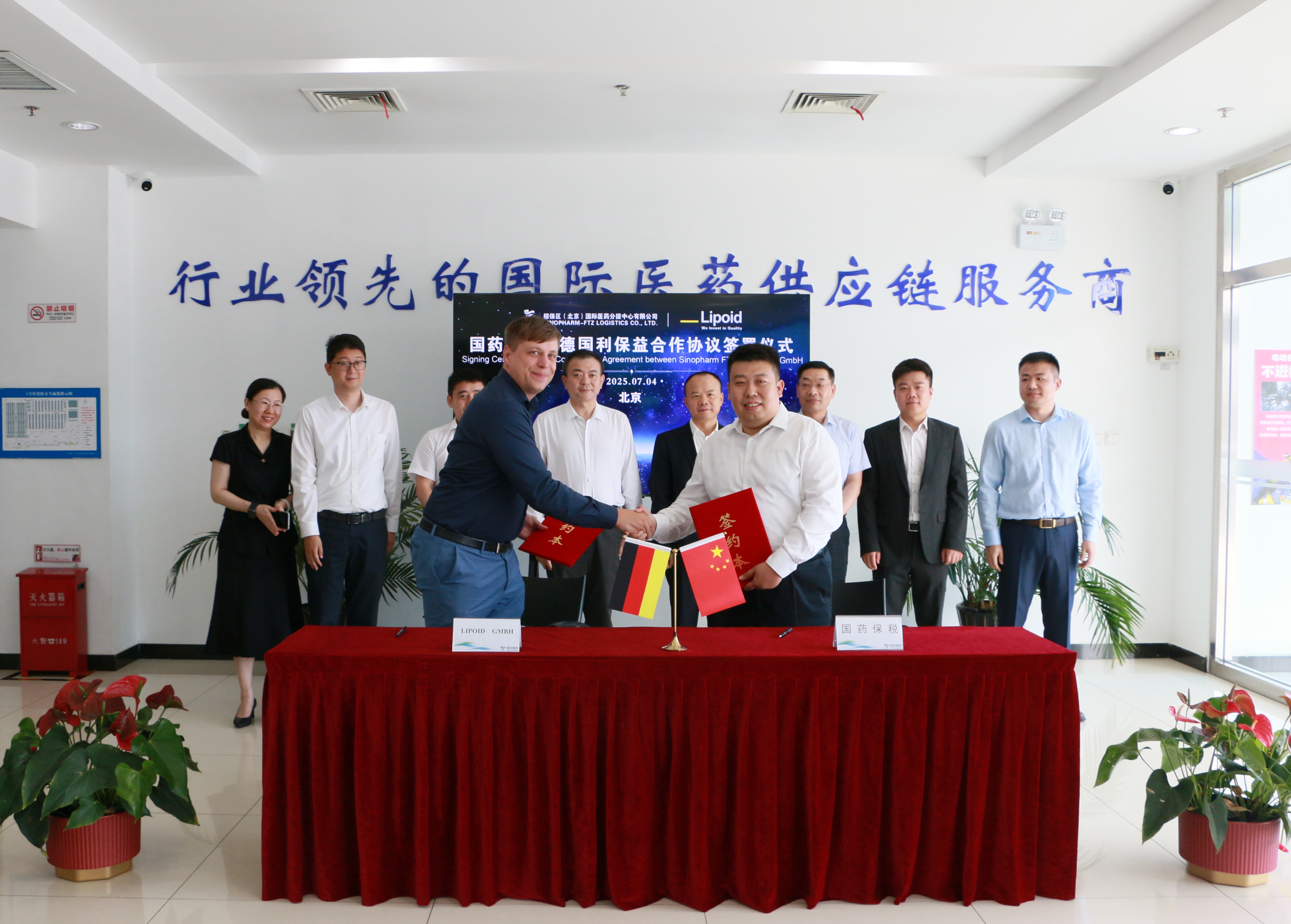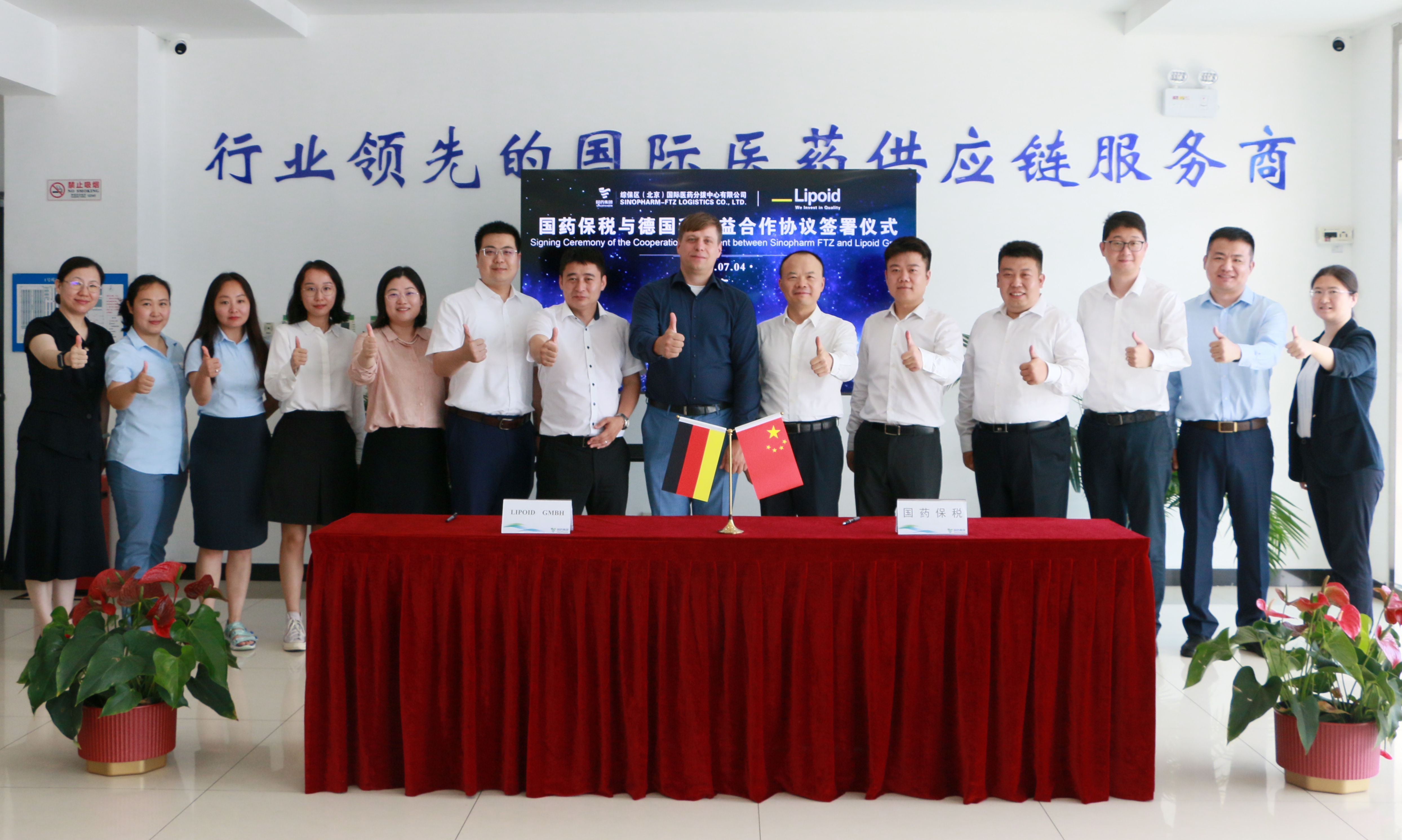 On July 4, Sinopharm Free Trade Zone (Beijing) International Pharmaceutical Distribution Center Co., Ltd. (Sinopharm-ftz), a subsidiary of Sinopharm Foreign Trade, and Lipoid, a world-leading supplier of pharmaceutical-grade phospholipids, signed a logistics service agreement in Beijing. Sinopharm-ftz will provide one-stop professional supply chain services for Lipoid's deep-frozen pharmaceutical products in China. General Manager of Sinopharm-ftz Li Zhaorui and Chairman of Lipoid China Dr. Balder Rebmann signed the agreement on behalf of both parties.