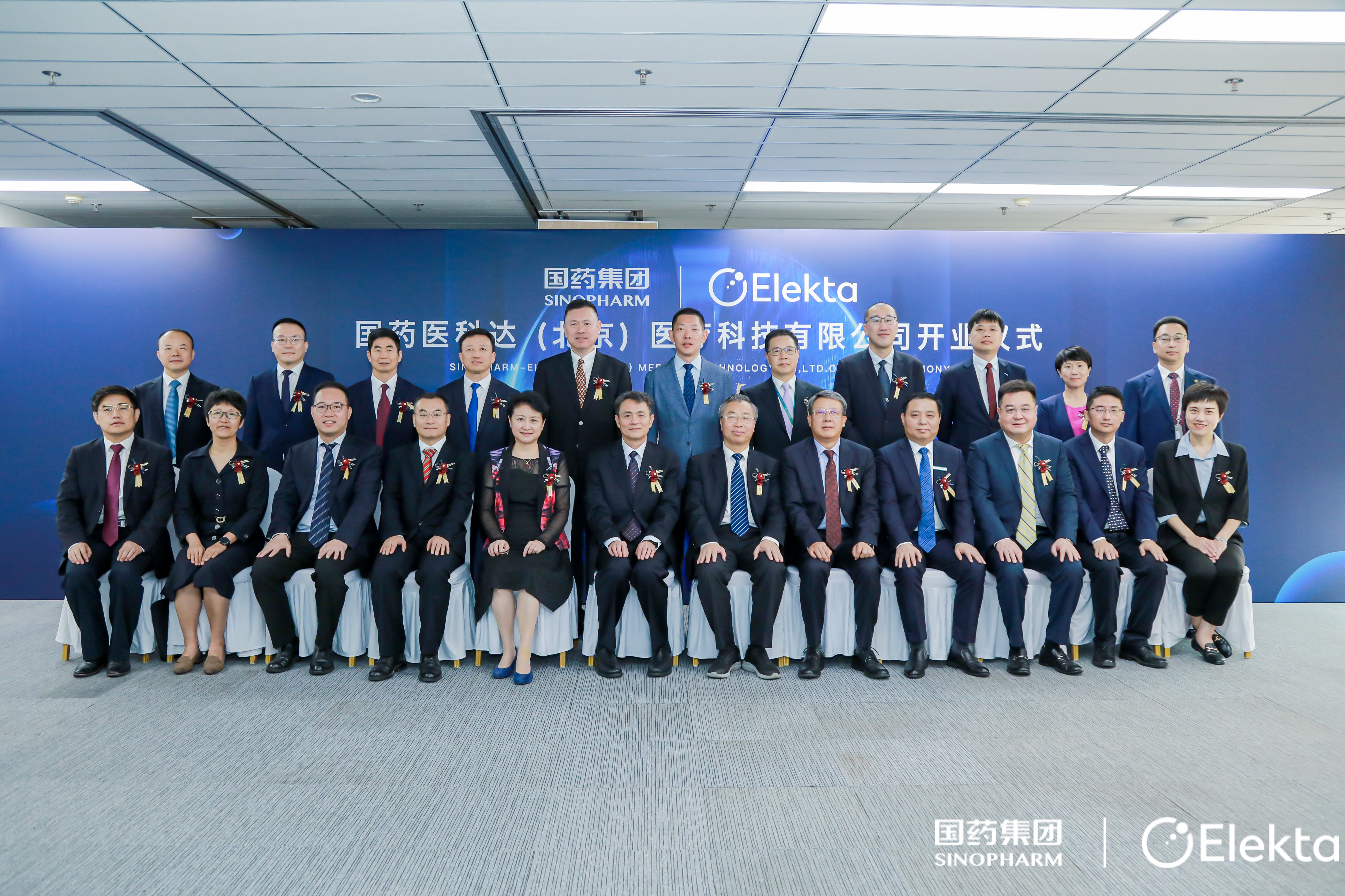 医科达中国区高级副总裁兼市场总监刘建斌、副总裁兼业务运营总监徐堃、副总裁兼财务总监吴炜翊,国药集团办公室主任姚秉成、国际合作部副主任谢玮,国药医疗总经理孙建、副总经理任泽宇,国药国际副总经理严兵、工会主席杨永戈、副总经理张丽琼、纪委书记陈安波等出席。