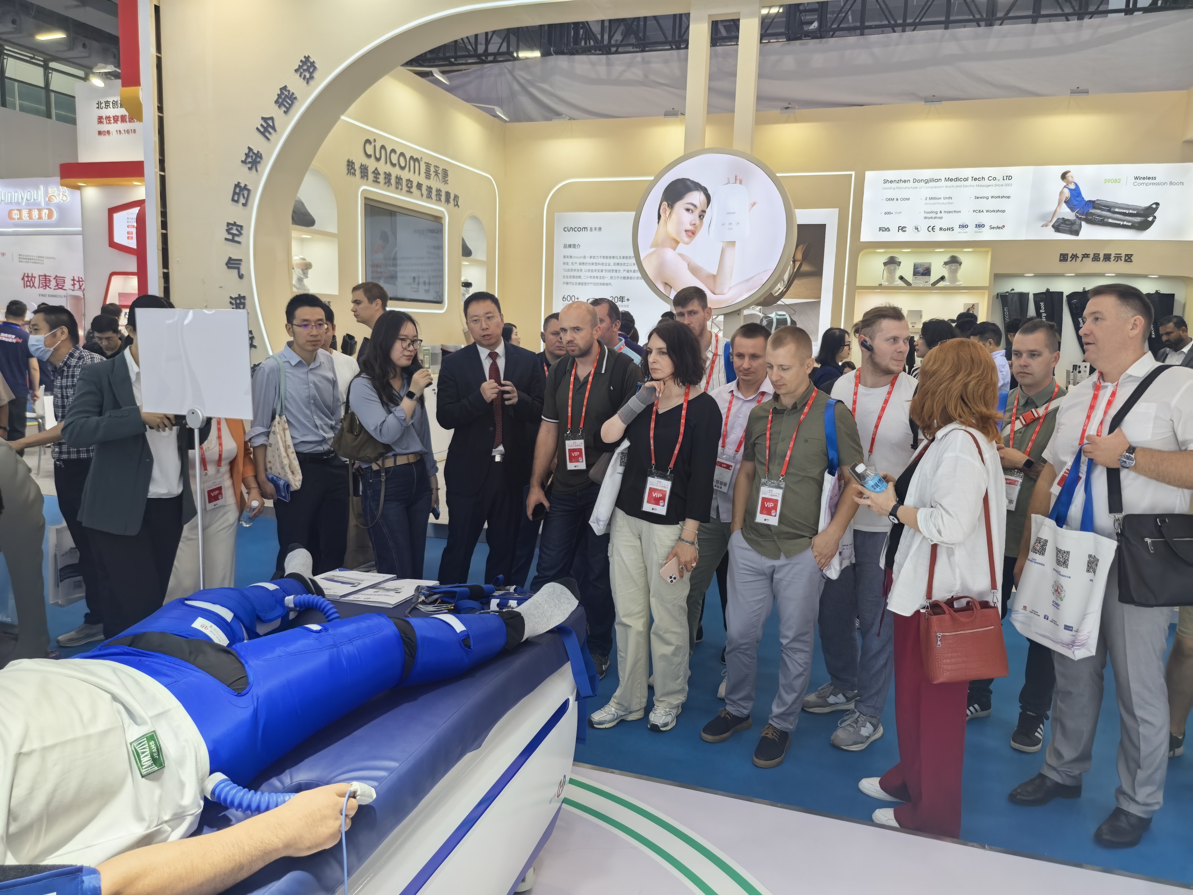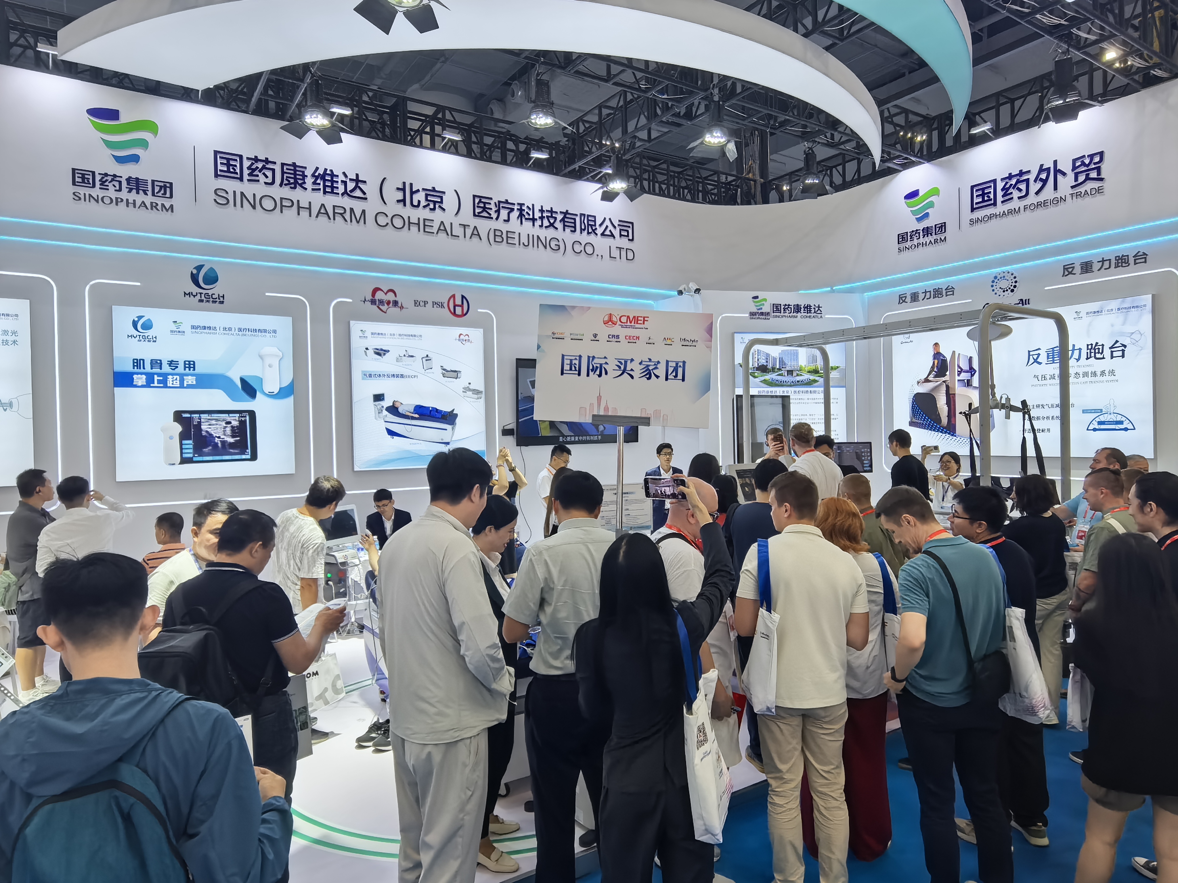 位于19.1馆F23的国药康维达展台,肌骨专用掌上超声、反重力跑台、双波长半导体激光治疗仪、气囊式体外反搏装置等产品悉数亮相,呈现公司在骨科康复、神经康复、心肺康复等领域的技术积累与产品矩阵,凭借专业的产品性能和沉浸式体验感受,吸引大量海内外观众驻足咨询,现场互动踊跃,交流不断,气氛热烈。