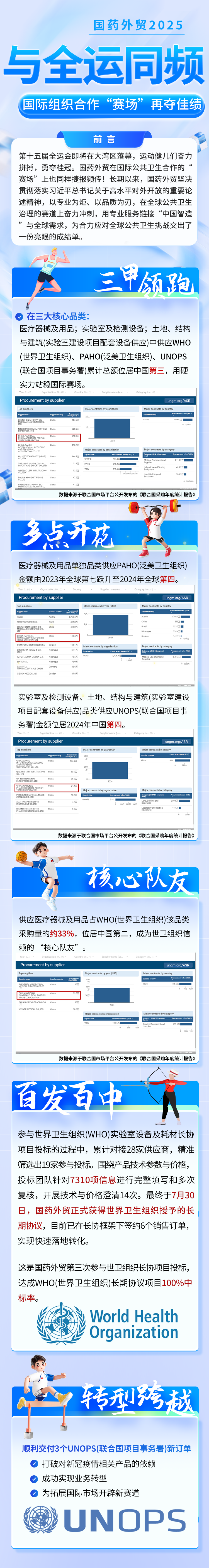 第十五届全运会即将在大湾区落幕,运动健儿们奋力拼搏,勇夺桂冠。国药外贸在国际公共卫生合作的“赛场”上也同样捷报频传!长期以来,国药外贸坚决贯彻落实习近平总书记关于高水平对外开放的重要论述精神,以专业为炬、以品质为刃,在全球公共卫生治理的赛道上奋力冲刺,用专业服务链接“中国智造”与全球需求,为合力应对全球公共卫生挑战交出了一份亮眼的成绩单。